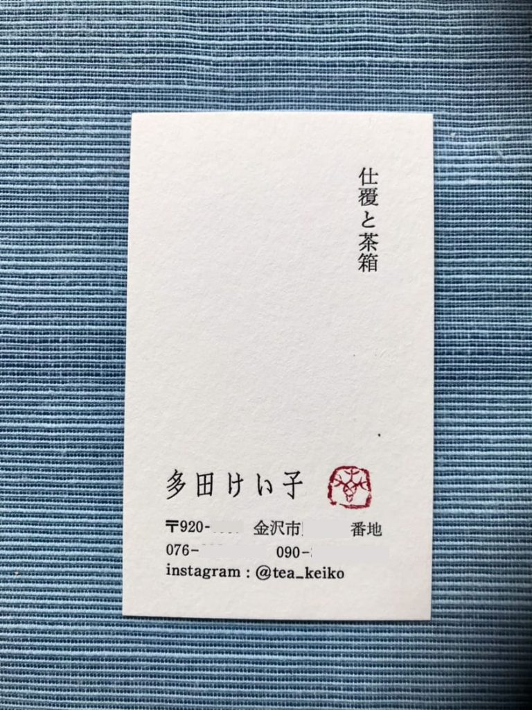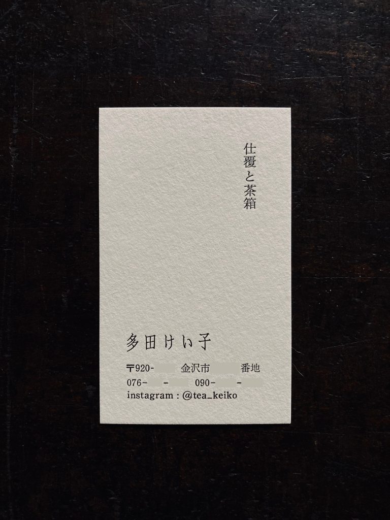 以前名刺のご依頼を頂いてから数年。今度茶箱展をすることになったから、と名刺増刷のご連絡でした。