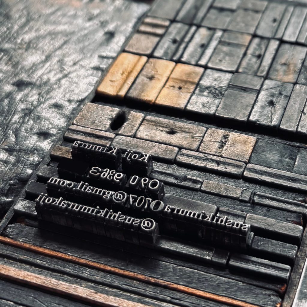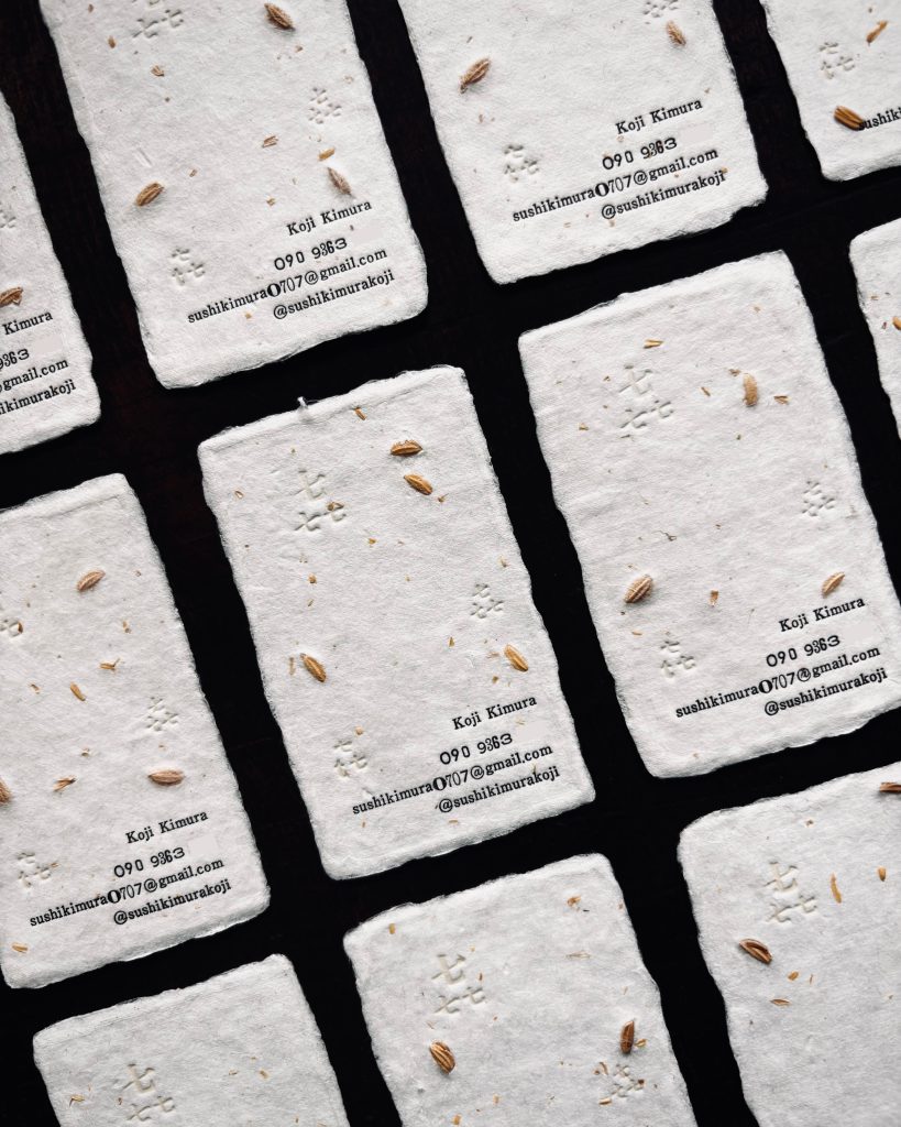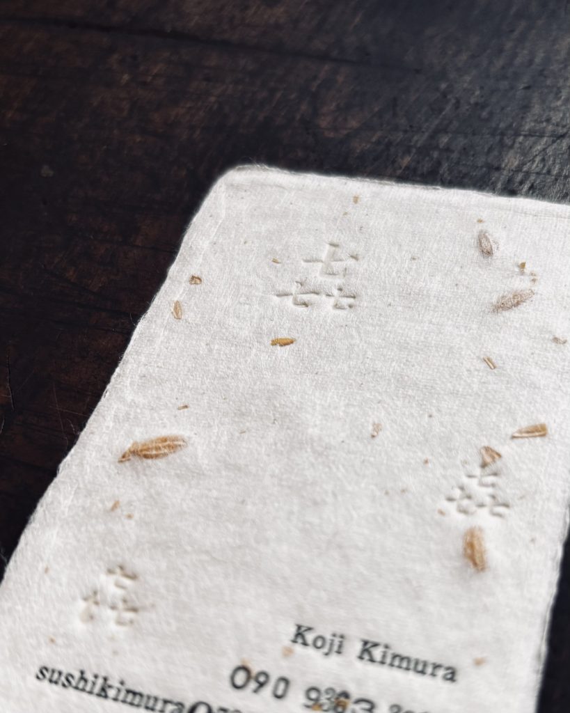 ブリコラージュ文字、籾殻の和紙も相まって唯一無二の名刺になりました。